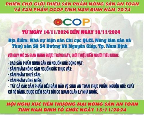 Cả nhà ơi! Cả nhà đừng quên là có hẹn với NGHĨA THÀNH FOOD tại sự kiện lớn một năm có 01 tại tỉnh Nam Định – Phiên chợ Nông sản an toàn và sản phẩm OCOP từ 14 – 18/11/2024 Tỉnh Nam Định nha